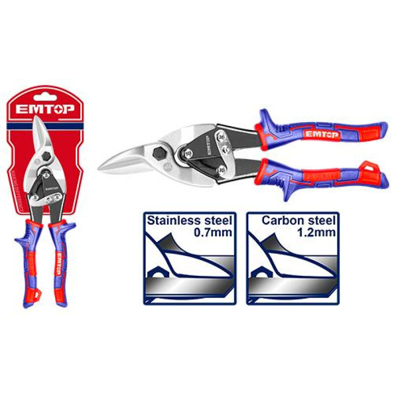 Unique design three tone soft handle Aviation snip( Right) Length:250mm?10"? Max.cutting thickness: Carbon steel