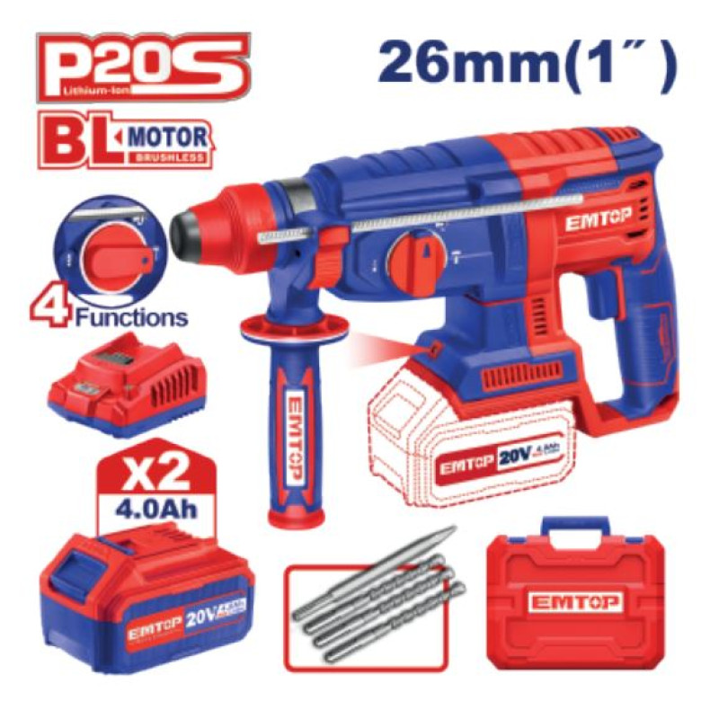 CORDLESS ROTARY HAMMER 20V SPEED 0-1100RPM LED ELRH202287 EMTOP