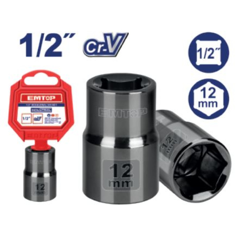 HEXAGONAL SOCKET 1/2" DR.6PT 12MM ESCT12121 EMTOP