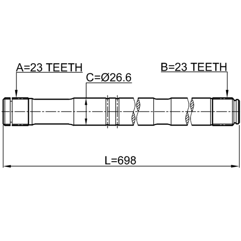 - Part Type: axle half shaft right 23x698x23