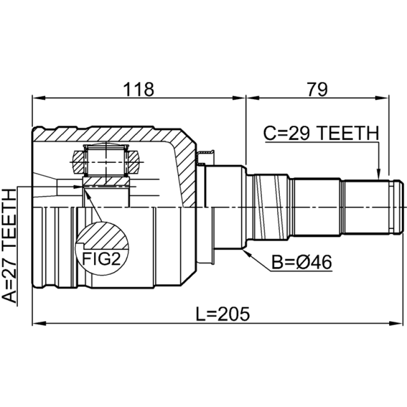 - Part Type: inner cv joint left 27x46x29