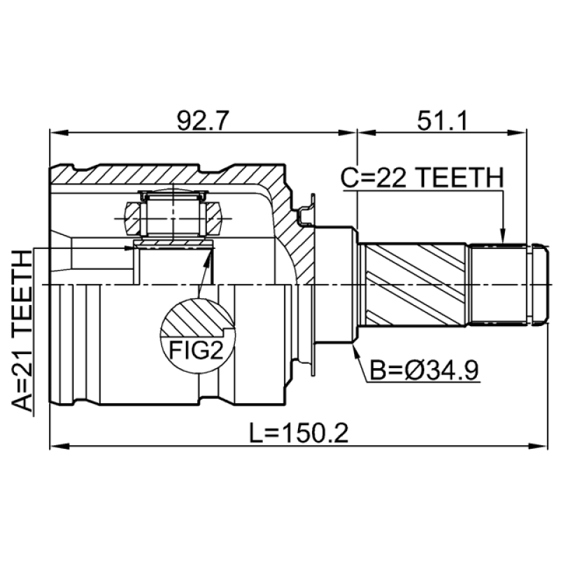 - Part Type: inner cv joint 21x34.9x22