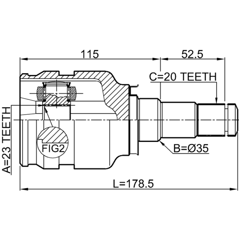 - Part Type: inner cv joint 23x35x20