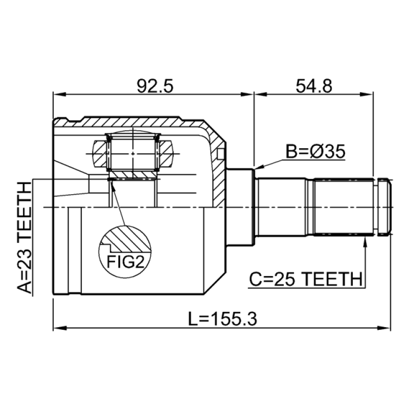 - Part Type: inner cv joint 23x35x25