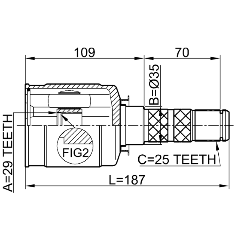 - Part Type: inner cv joint 29x35x25
