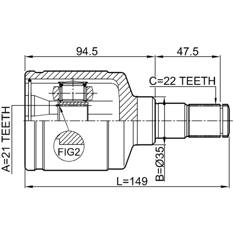 - Part Type: inner cv joint left 21x35x22