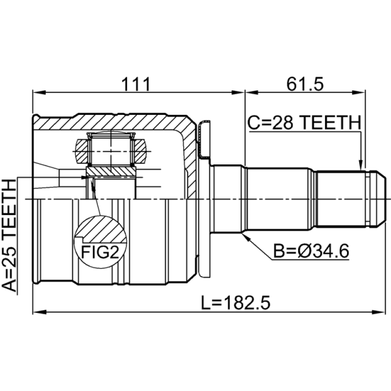 - Part Type: inner cv joint left 25x34.6x28