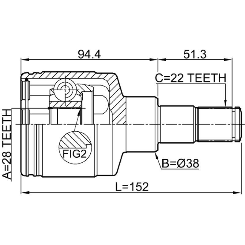 - Part Type: inner cv joint left 28x38x22