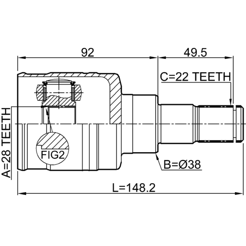 - Part Type: inner cv joint left 28x38x22