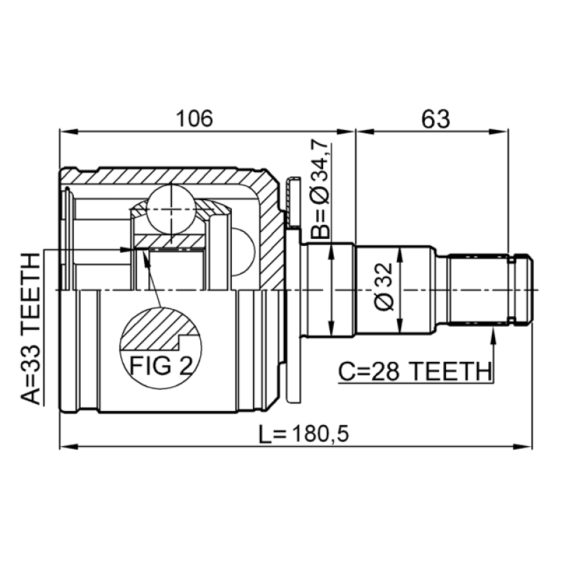 - Part Type: inner cv joint left 33x34.7x28