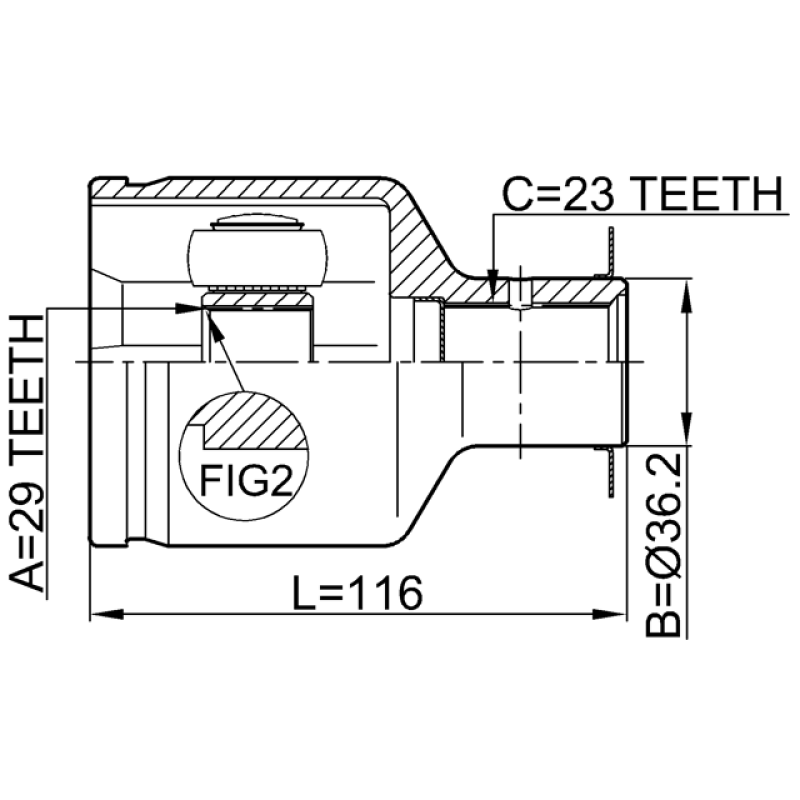 - Part Type: inner cv joint right 29x36.2x23