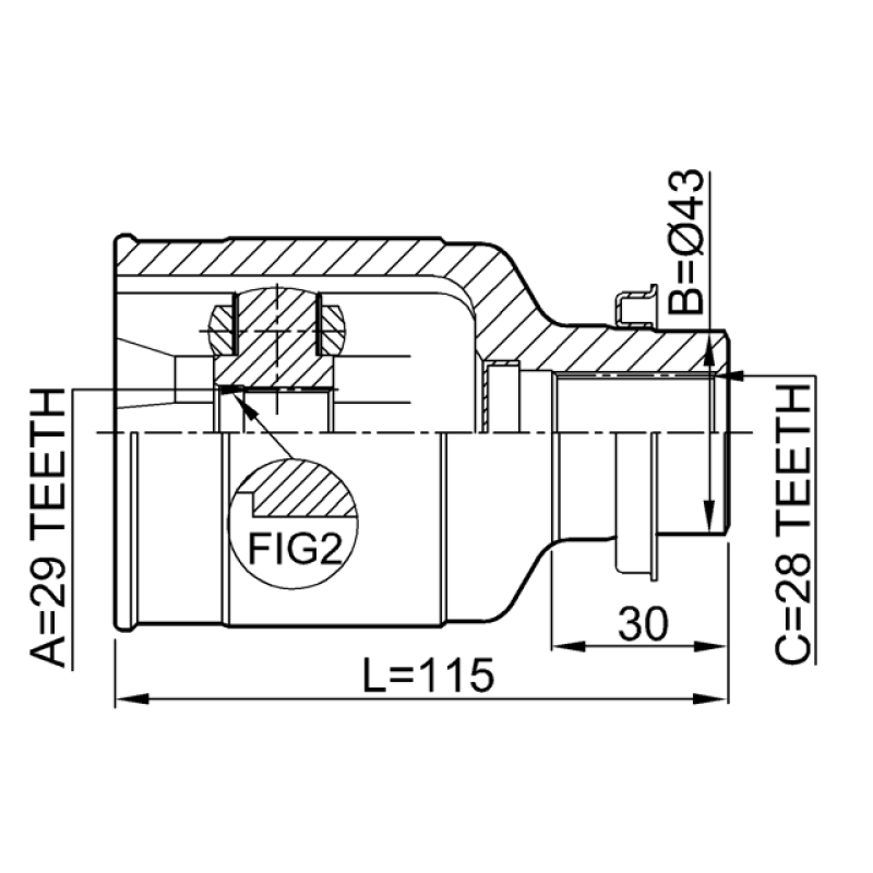 - Part Type: inner cv joint right 29x43x28