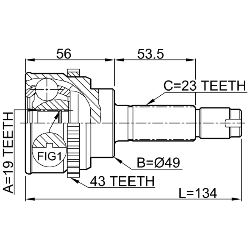 - Part Type: outer cv joint 19x49x23