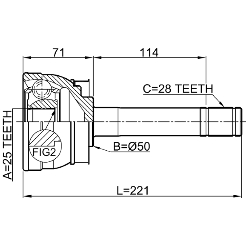 - Part Type: outer cv joint 25x50x28