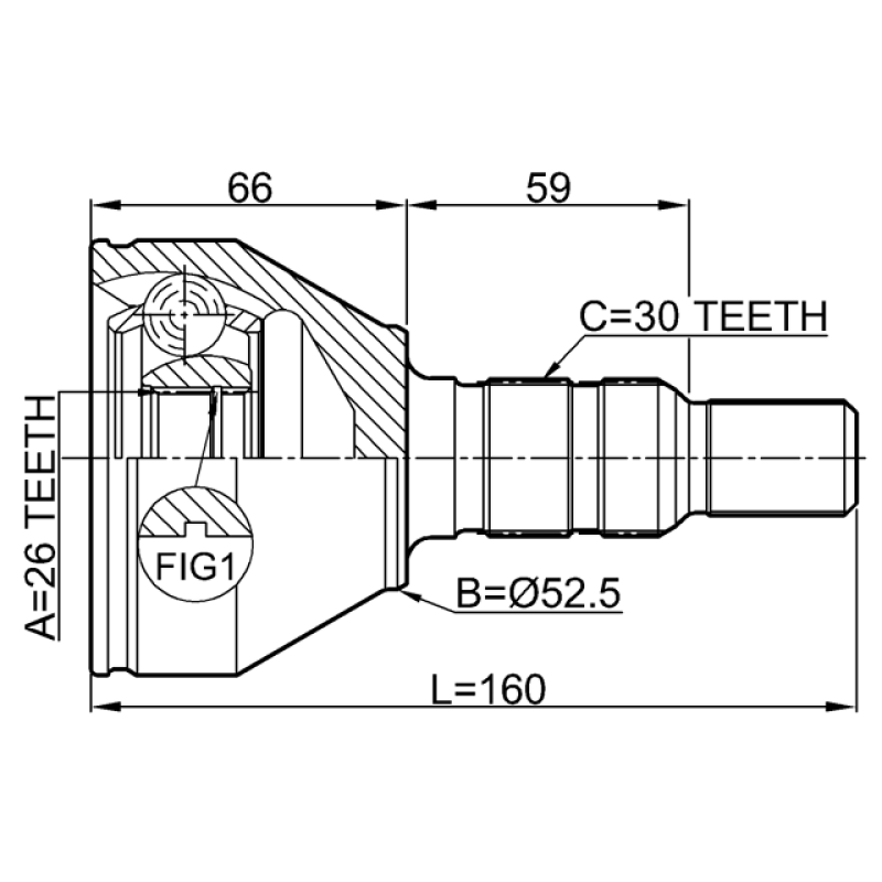 - Part Type: outer cv joint 26x52.5x30