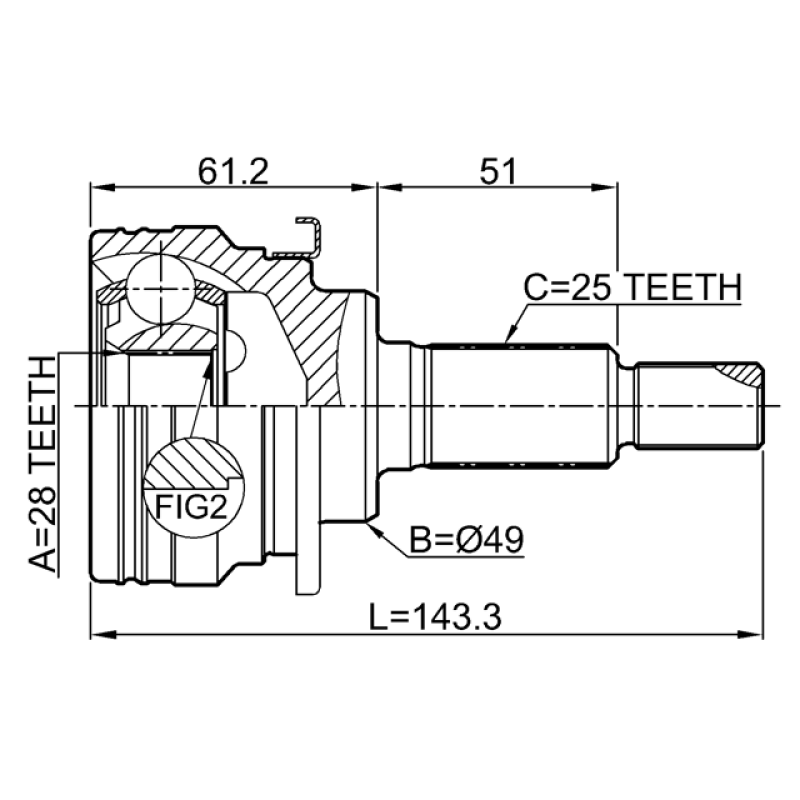- Part Type: outer cv joint 28x49x25