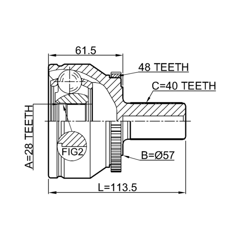 - Part Type: outer cv joint 28x57x40