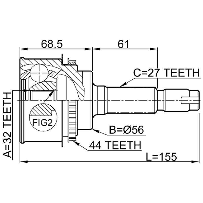 - Part Type: outer cv joint 32x56x27