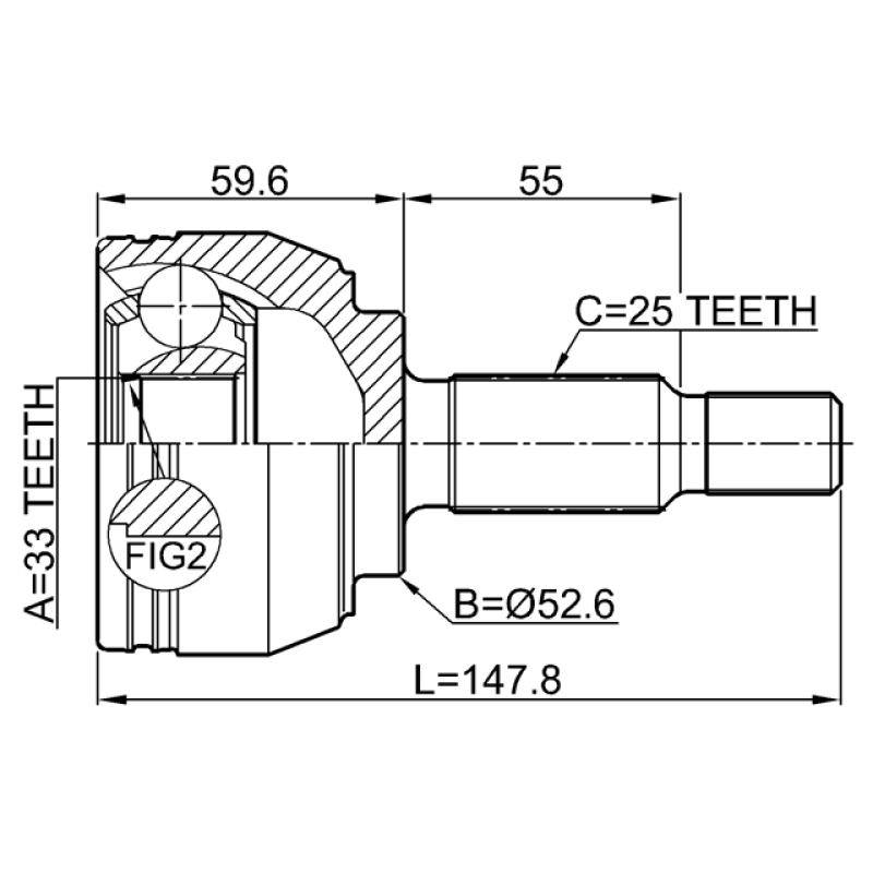 - Part Type: outer cv joint 33x52.6x25