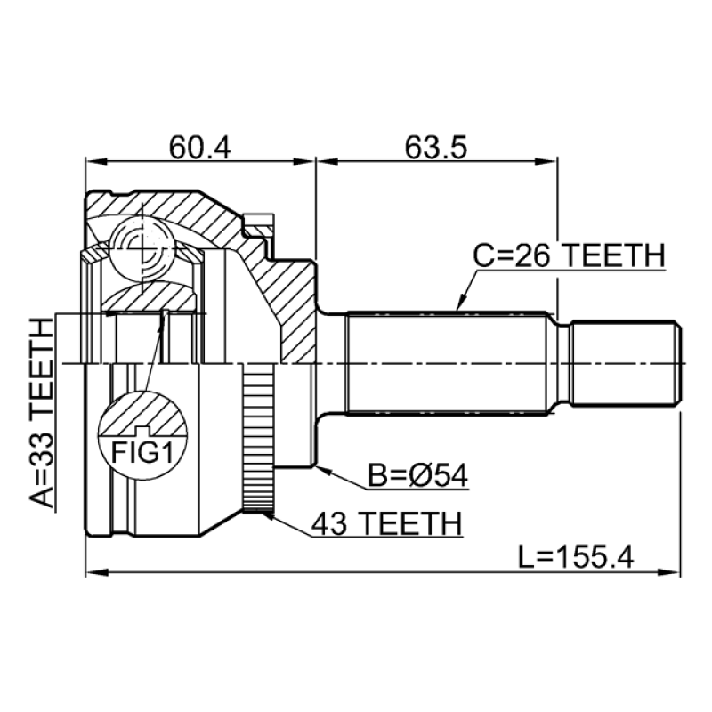 - Part Type: outer cv joint 33x54x26