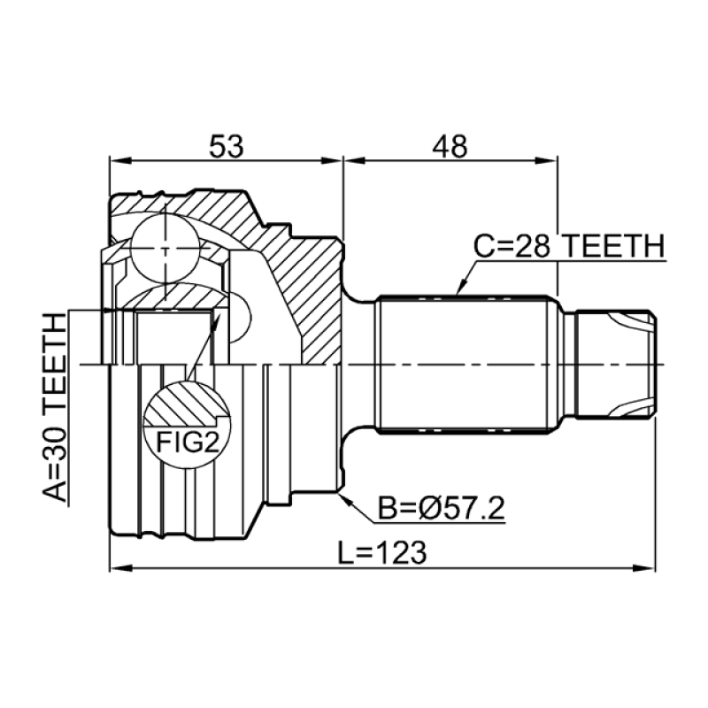 - Part Type: outer cv joint rear 30x57.2x28