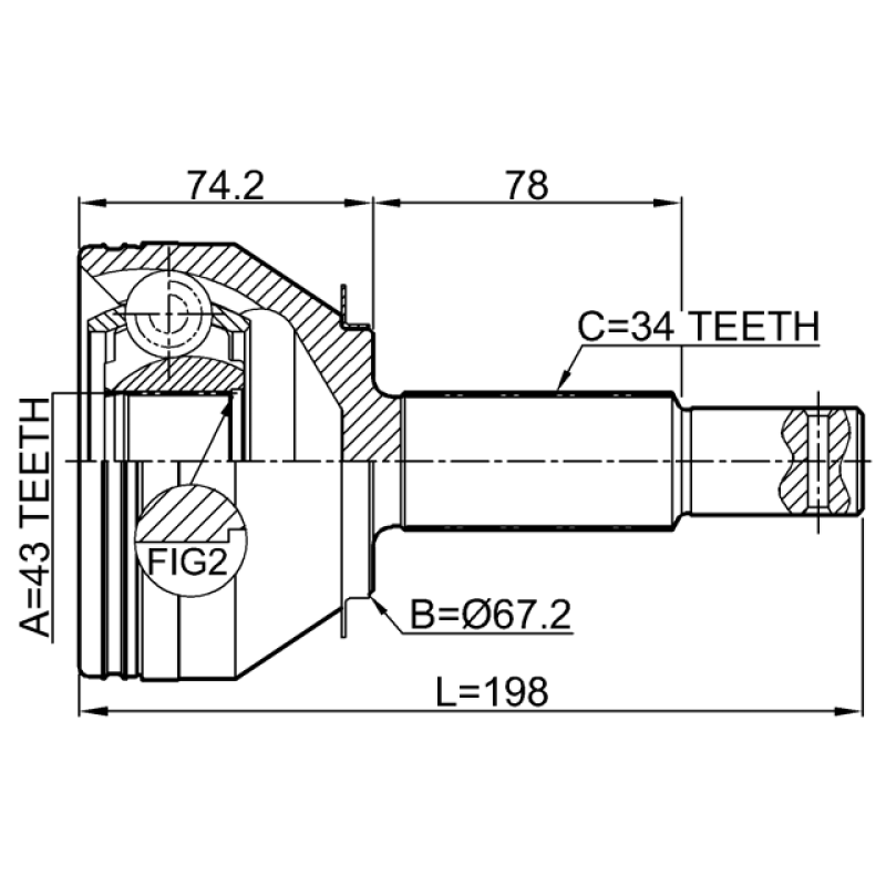 - Part Type: outer cv joint rear 43x67.2x34