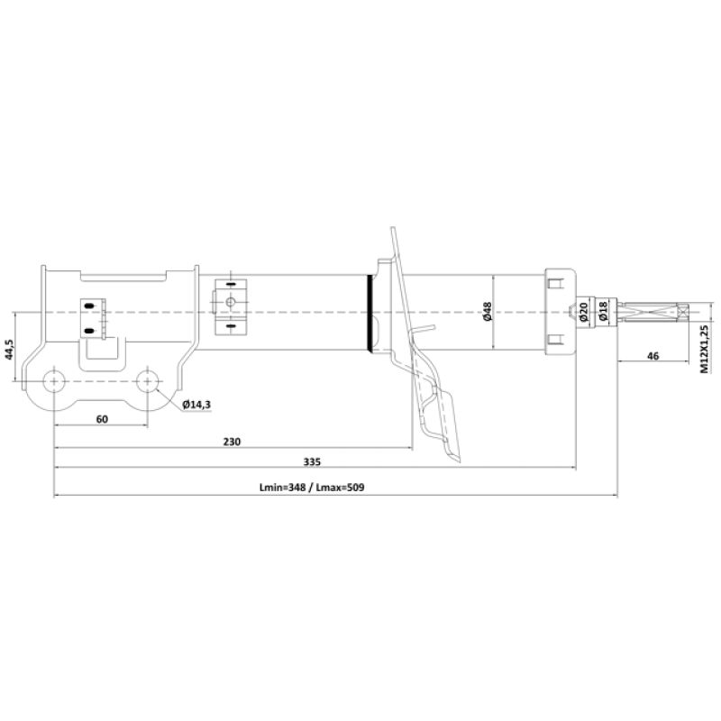 | Shock absorber mounting type | Top pin, Bottom clamp |