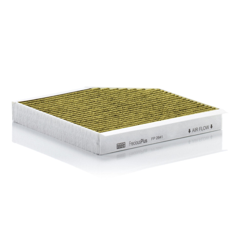 Biofunctional MANN-FILTER FreciousPlus cabin air filters - nearly 100% protection against nitrogen oxides, dust, allergens and mould - harmful gases and unpleasant odours are also eliminated and virus aerosols filtered. The three-layer filter technology absorbs almost 100% of allergens, reduces the growth of molds and bacteria by more than 98% and stops fine dust almost completely.