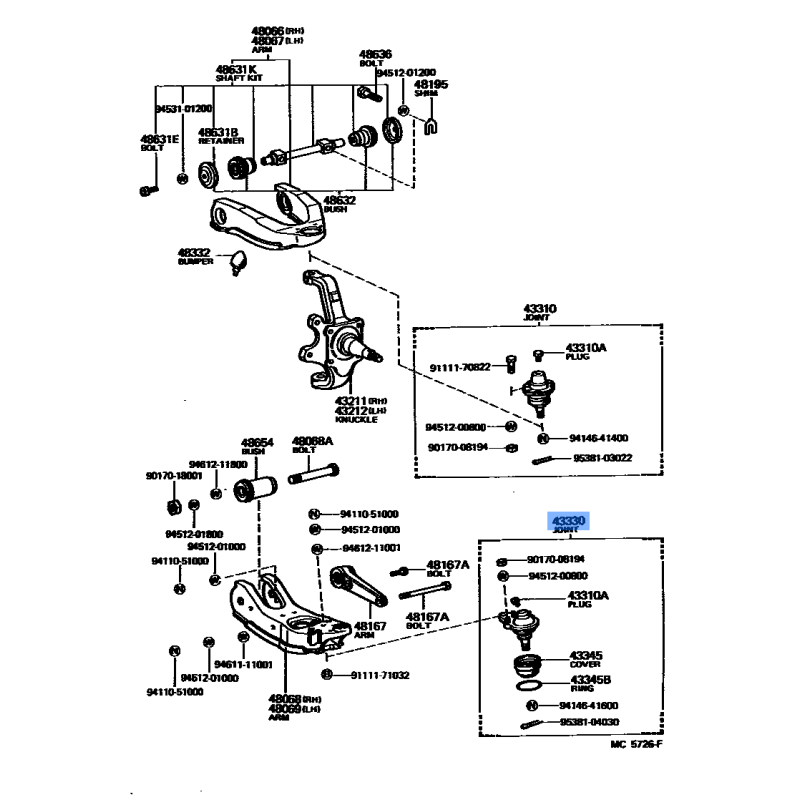 BALL JOINT BOTTAM RH MANUFACTURED BY TOYOTA , PART NUMBER 43330-39045 , OE PART NUMBER 43330-39045 TO FIT TOYOTA VEHICLES