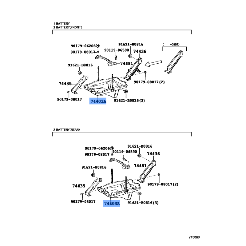 CARRIER SUB ASSY MANUFACTURED BY TOYOTA , PART NUMBER 74403-60240 , OE PART NUMBER 74403-60240 TO FIT TOYOTA VEHICLES