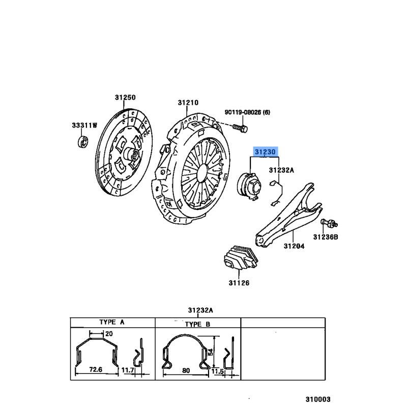 | Toyota | 31230-05010 31230-05012 31230-12170 31230-12171 31230-12180 31230-12190 31230-12191 3123017010 31230-17011 31230-17012 31230-52020 |