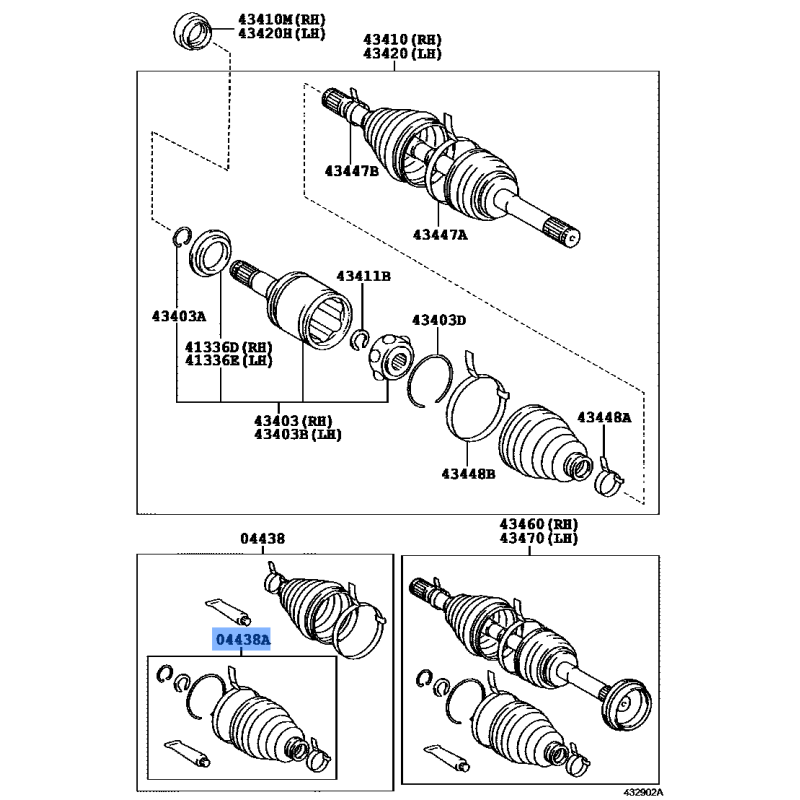 BOOT KIT FR DRIVE MANUFACTURED BY TOYOTA , PART NUMBER 04437-60080 , OE PART NUMBER 04437-60080 TO FIT TOYOTA VEHICLES- Manufacturer: TOYOTA