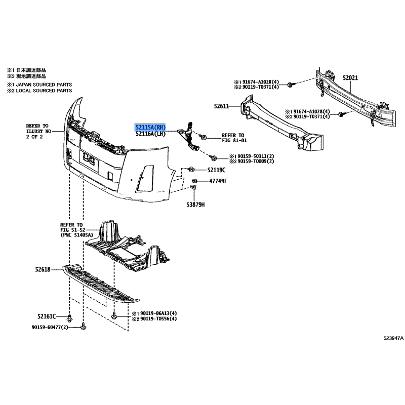 BUMPER BRACKET RH MANUFACTURED BY TOYOTA , PART NUMBER 52115-26190 , OE PART NUMBER 52115-26190 TO FIT TOYOTA VEHICLES