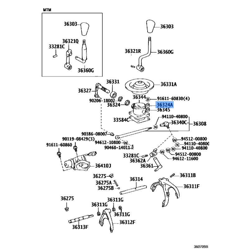 BUSH TRANSFER SHIFT MANUFACTURED BY TOYOTA , PART NUMBER 36324-60070 , OE PART NUMBER 36324-60070 TO FIT TOYOTA VEHICLES