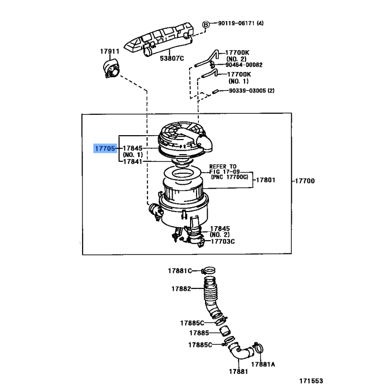 CAP SUB ASSY AIR MANUFACTURED BY TOYOTA , PART NUMBER 17705-17160 , OE PART NUMBER 17705-17160 TO FIT TOYOTA VEHICLES