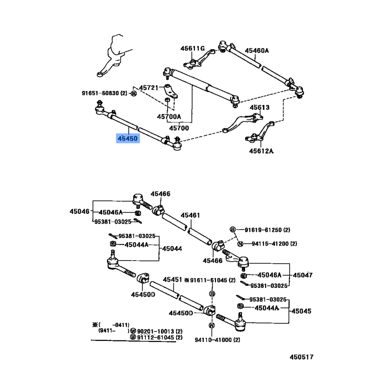 CENTER ROD MANUFACTURED BY TOYOTA , PART NUMBER 45451-39405 , OE PART NUMBER 45451-39405 TO FIT TOYOTA VEHICLES
