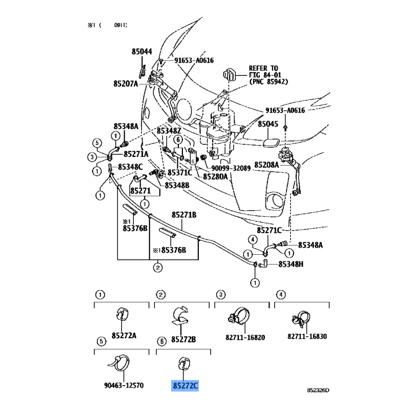 CLAMP MANUFACTURED BY TOYOTA , PART NUMBER 85272-28030 , OE PART NUMBER 85272-28030 TO FIT TOYOTA VEHICLES- Manufacturer: TOYOTA
