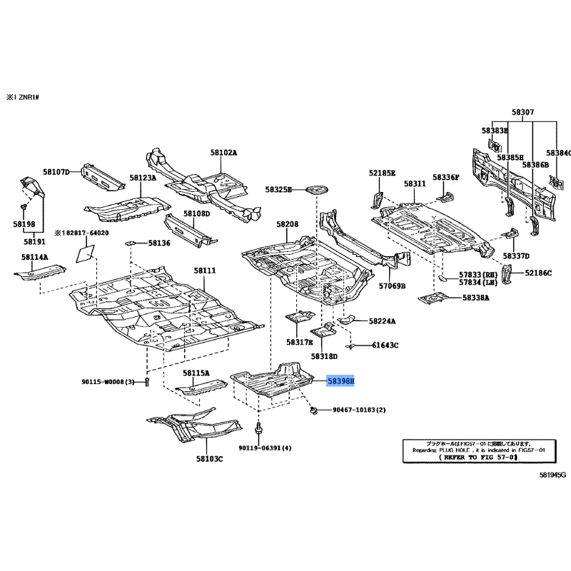 COVER FLOOR UNDER MANUFACTURED BY TOYOTA , PART NUMBER 58398-33070 , OE PART NUMBER 58398-33070 TO FIT TOYOTA VEHICLES- Manufacturer: TOYOTA