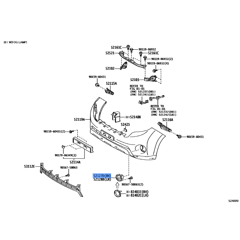COVER FOGLAMP MANUFACTURED BY TOYOTA , PART NUMBER 52127-60160 , OE PART NUMBER 52127-60160 TO FIT TOYOTA VEHICLES