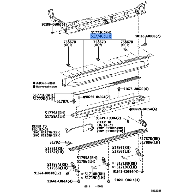 COVER,STEP PLATE LH MANUFACTURED BY TOYOTA , PART NUMBER 51774-60150 , OE PART NUMBER 51774-60150 TO FIT TOYOTA VEHICLES