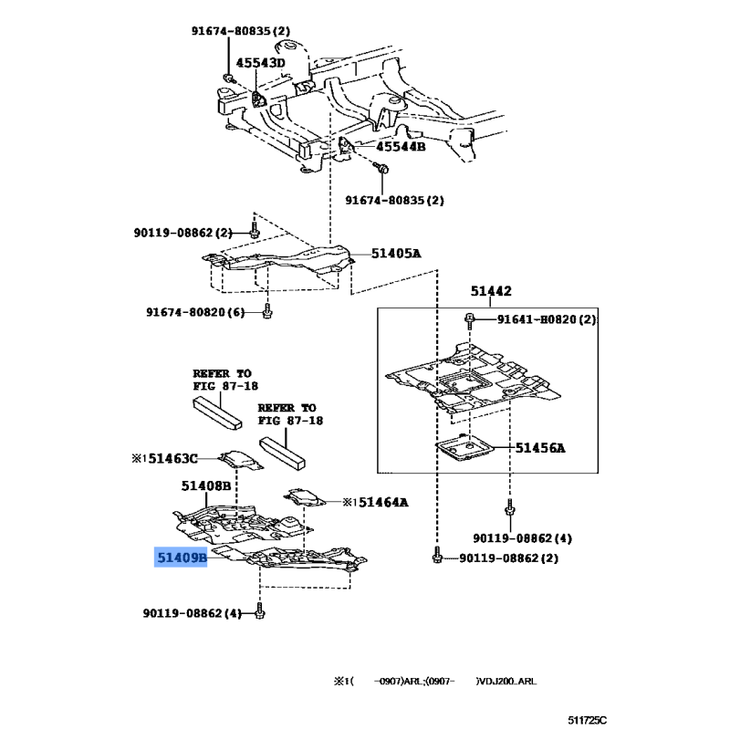 COVER SUB ASSY MANUFACTURED BY TOYOTA , PART NUMBER 51409-60090 , OE PART NUMBER 51409-60090 TO FIT TOYOTA VEHICLES