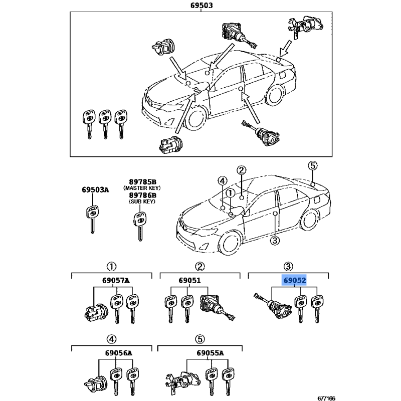 CYLINDER AND KEY SET LH MANUFACTURED BY TOYOTA , PART NUMBER 69052-06061 , OE PART NUMBER 69052-06061 TO FIT TOYOTA VEHICLES- Manufacturer: TOYOTA