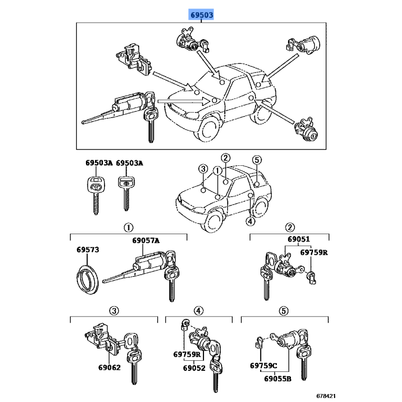 CYLINDER & KEY SET MANUFACTURED BY TOYOTA , PART NUMBER 69005-42060 , OE PART NUMBER 69005-42060 TO FIT TOYOTA VEHICLES