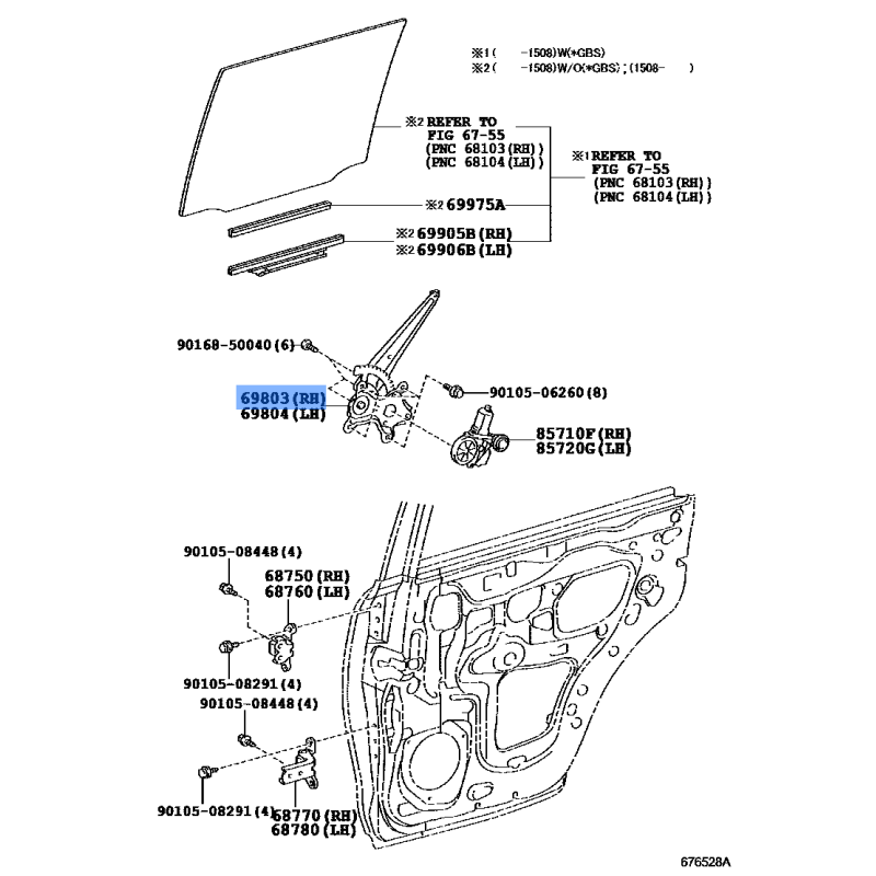 DOOR REGULATOR MANUFACTURED BY TOY , PART NUMBER 69803-35080 , OE PART NUMBER 69803-35080 TO FIT TOYOTA VEHICLES- Manufacturer: TOYOTA