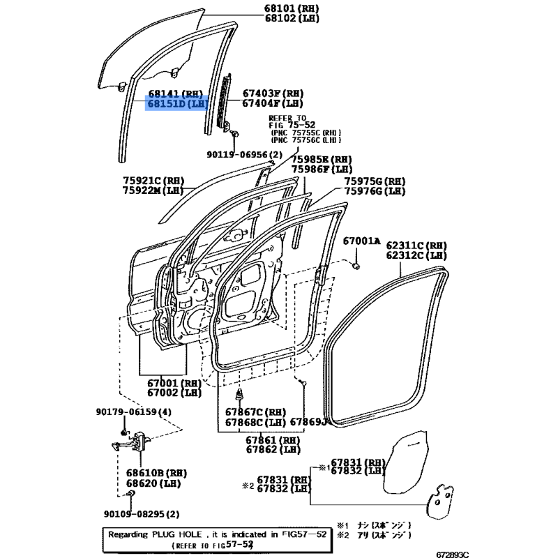 DOOR WIND RUN MANUFACTURED BY TOYOTA , PART NUMBER 68151-60040 , OE PART NUMBER 68151-60040 TO FIT TOYOTA VEHICLES