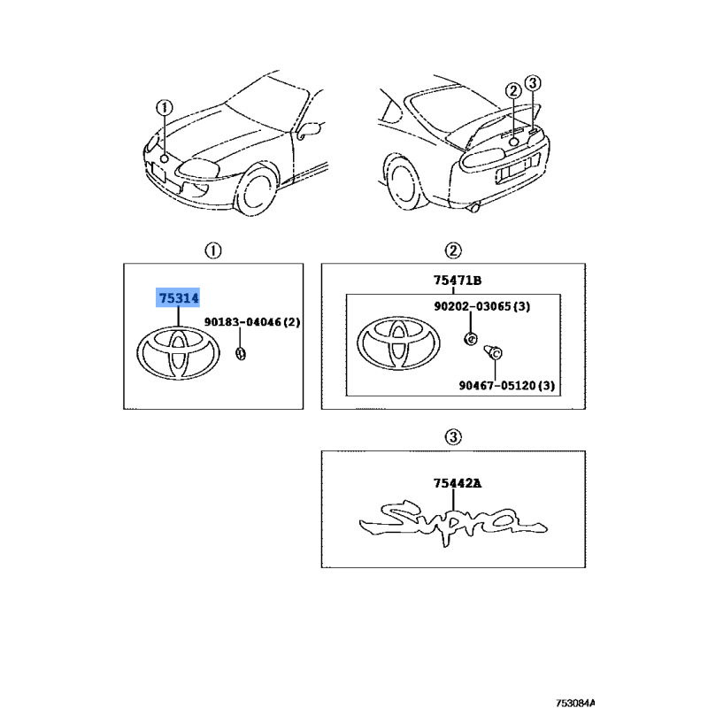 EMBLEM ORNAMENT MANUFACTURED BY TOYOTA , PART NUMBER 75314-14010 , OE PART NUMBER 75314-14010 TO FIT TOYOTA VEHICLES