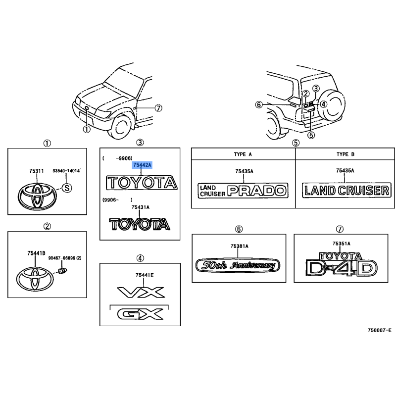 EMBLEM ORNAMENT- MANUFACTURED BY TOYOTA , PART NUMBER 75443-14180 , OE PART NUMBER 75443-14180 TO FIT TOYOTA VEHICLES- Manufacturer: TOYOTA