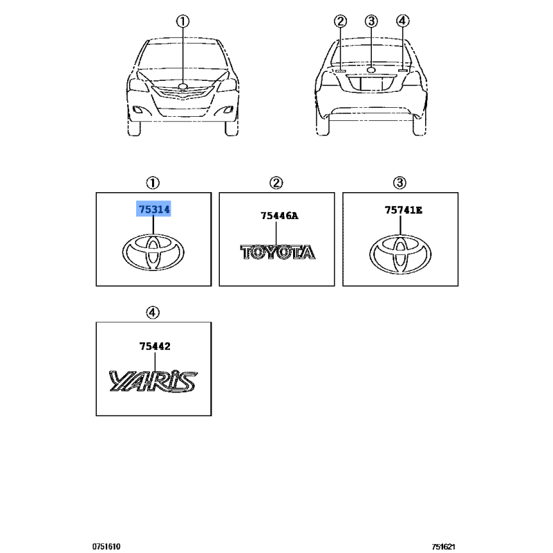 EMBLEM SUB ASSY MANUFACTURED BY TOYOTA , PART NUMBER 75301-52080 , OE PART NUMBER 75301-52080 TO FIT TOYOTA VEHICLES- Manufacturer: TOYOTA