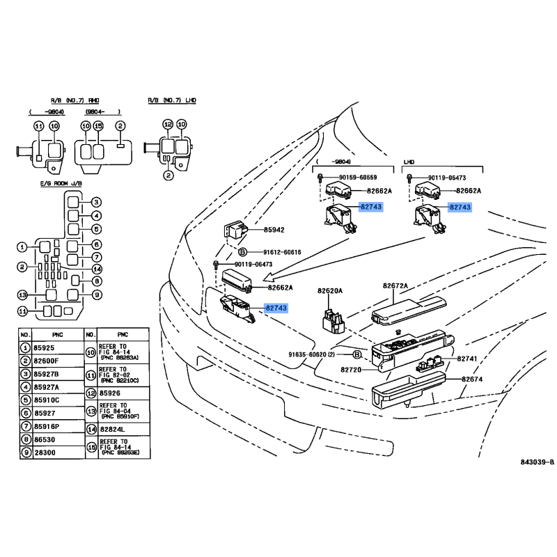 BLOCK ENG ROOM MANUFACTURED BY TOYOTA , PART NUMBER 82743-30040 , OE PART NUMBER 82743-30040 TO FIT TOYOTA VEHICLES
