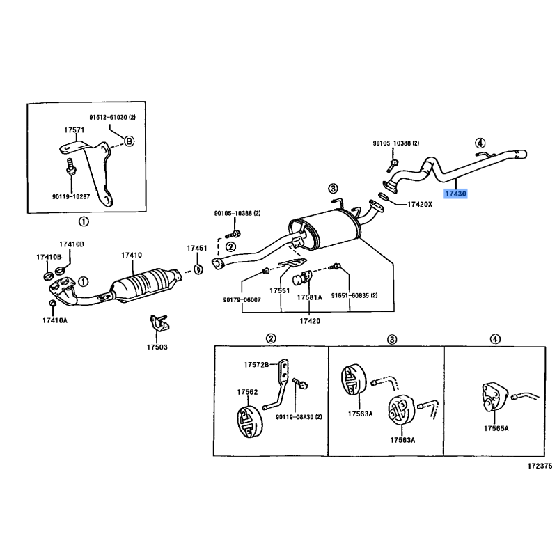EXHAUST PIPE MANUFACTURED BY TOYOTA , PART NUMBER 17405-62080 , OE PART NUMBER 17405-62080 TO FIT TOYOTA VEHICLES- Manufacturer: TOYOTA